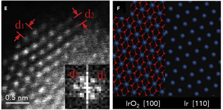 图9.(E)沿[112]轴立地及第的Ru@IrOx核-壳二十面体纳米晶体的HAADF-STEM图像。(F)四方IrO₂与面心立方Ir别离沿[100]和[110]轴的投影结构模子星空体育。DOI: 10.1016/j.chempr.2018.11.010