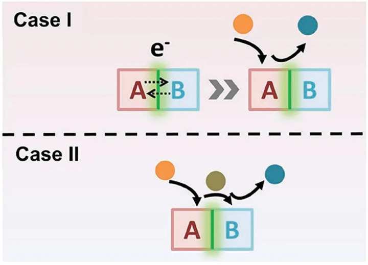 图3.A、B组分组成含界面催化剂:情形I,A提供活性位,B调控A名义环境以优化电催化;情形II,吸附与脱附别离发生在A、B。DOI: 10.1002/adfm.201806419