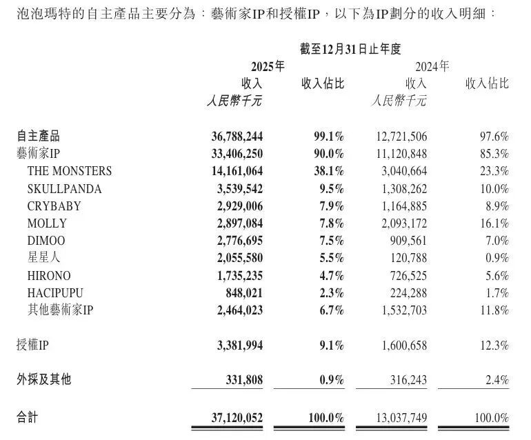 这也变相让泡泡玛特自有IP的营收结构更加抵挡衡。年内,THE MONSTERS收入占比从2024年的23.3%持续进步至38.1%,这意味着公司对单一IP的依赖度不降反升。