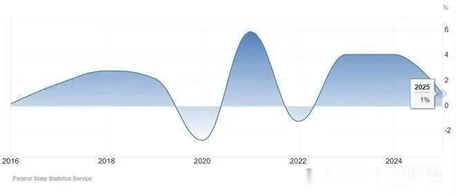 这一经导致了俄罗斯 2025 年的GDP 增速仅为 1.1%,远低于冲突前的增长水平,况且阐扬军工复合体下的经济泡沫皆一经无法平抑通胀带来的全社会经济部门零落
