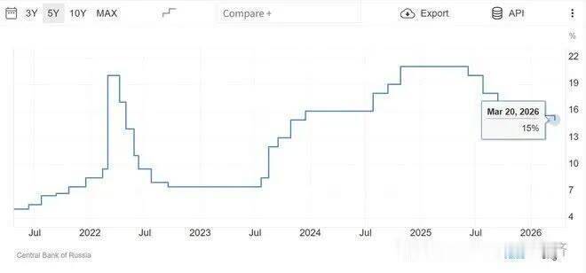同期,2025 年以来,为遏制贬值与通胀,俄央行已累计 4 次加息,将基准利率打到最高 21%的高位,尔后天然执续降息,但目下依然高达15%,高利率天然在一定进度上遏制了通胀,但也大幅推高了国内企业的融资成本,压制了制造业复苏与内需增长。