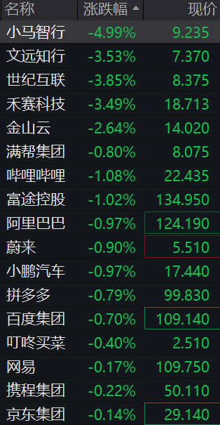 热点中概股再度下落,星空体育(中国)官方网站小马智行跌近5%,文远知行、禾赛科技跌超3%,金山云跌超2%,蔚来、阿里巴巴、百度集团、京东等集体低开。